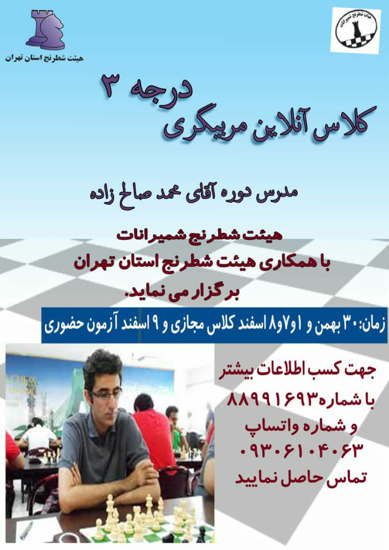 آزمون مربیگری درجه ۳ در هیات شطرنج استان تهران برگزار گردید(شنبه۹اسفند ۹۹مدرس دوره جناب آقای صالح زاده) 10 اسفند 1399 admin اخبار داخلی / هیات شطرنج تهران 0 1 499 0 ادامه مطلب