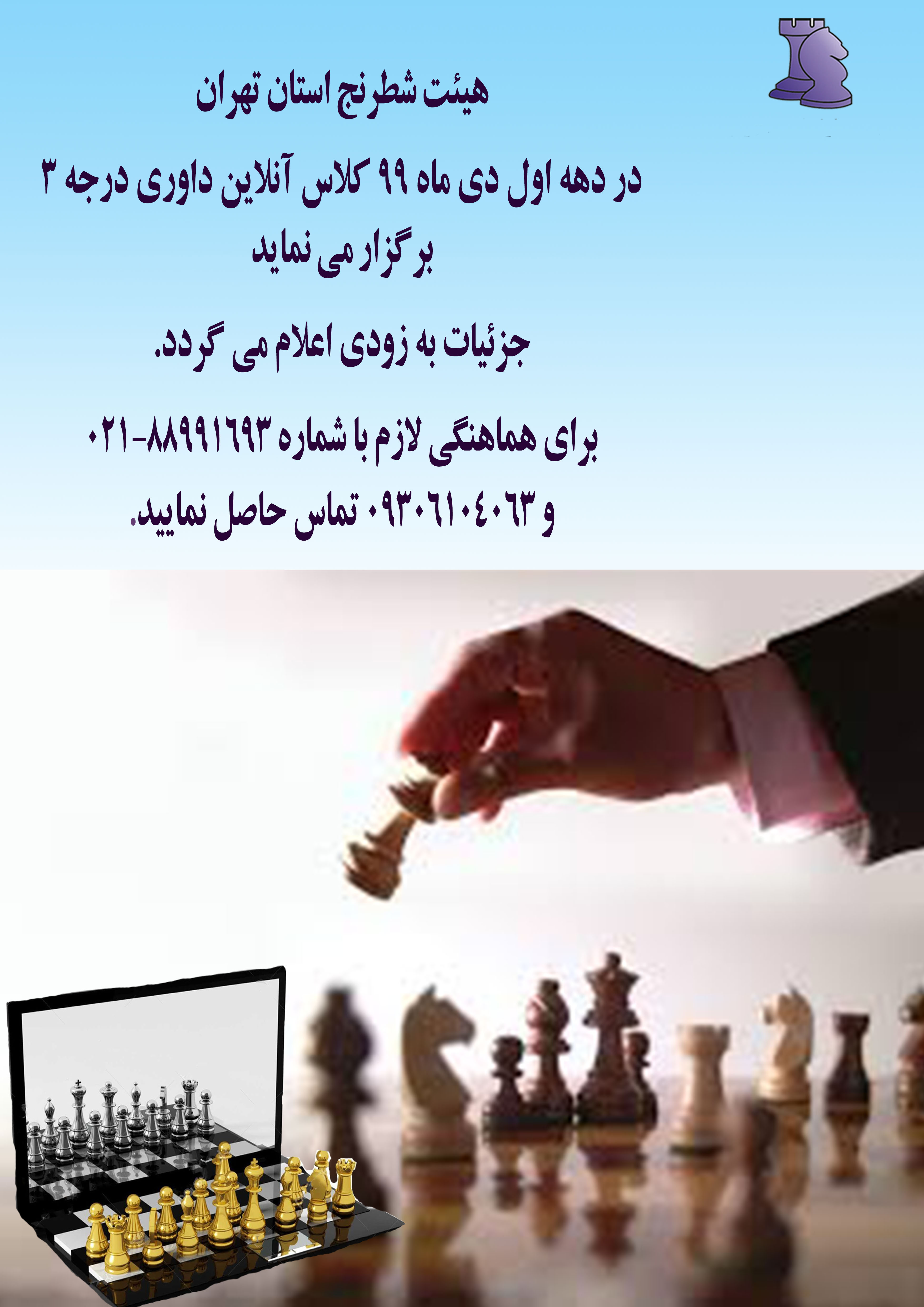 پایان کلاس داوری درجه ۳، با برگزاری کلاس آنلاین و آزمون حضوری در ۱۵ دی ماه ۹۹تهران