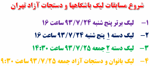 شروع مسابقات لیگ باشگاهها و دستجات استان تهران 10 مهر 1393 admin اطلاعیه و آیین نامه ها 0 13 252 0 قرعه کشی و جدول زمان بندی در ادامه مطلب ادامه مطلب