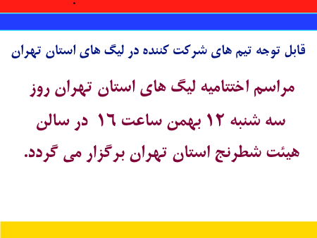 برگزاری اختتامیه لیگ های استان تهران 5 بهمن 1395 admin اخبار داخلی / اطلاعیه و آیین نامه ها 0 4 966 0 ادامه مطلب
