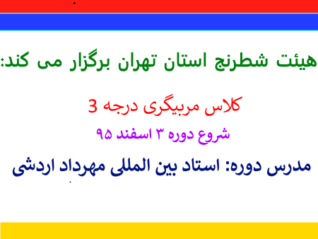 کلاس مربیگری درجه 3 - مدرس دوره: استاد بین المللی مهرداد اردشی 5 بهمن 1395 admin اخبار داخلی / اطلاعیه و آیین نامه ها 0 6 078 0 ادامه مطلب