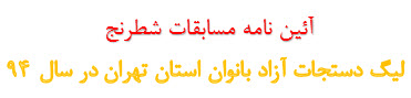 آیین نامه دستجات آزاد بانوان استان تهران 11 شهریور 1394 admin اطلاعیه و آیین نامه ها 0 5 828 0 سایت نتایج مسابقات سایت نتایج نیم فصل دوم ادامه مطلب