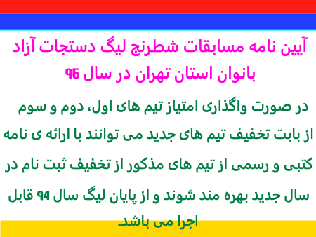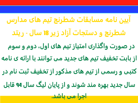 آیین نامه لیگ مدارس شطرنج و دستجات آزاد زیر 18 سال استان تهران 11 شهریور 1395 admin اطلاعیه و آیین نامه ها 0 5 976 0 ادامه مطلب
