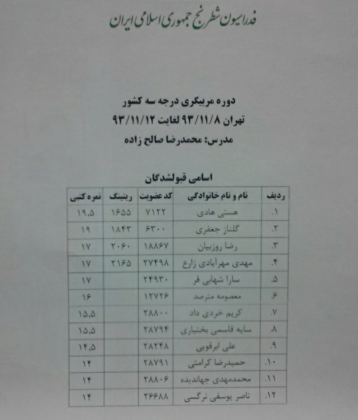 اسامی قبول شدگان کلاس مربیگری درجه 3 1 اسفند 1393 admin اطلاعیه و آیین نامه ها 0 11 917 چاپ مطلب 0 بازگشت بازدید کننده گرامی ، شما به عضویت سایت در نیامده اید. پیشنهاد می کنیم در سایت ثبت نام کنید و یا وارد سایت شوید.