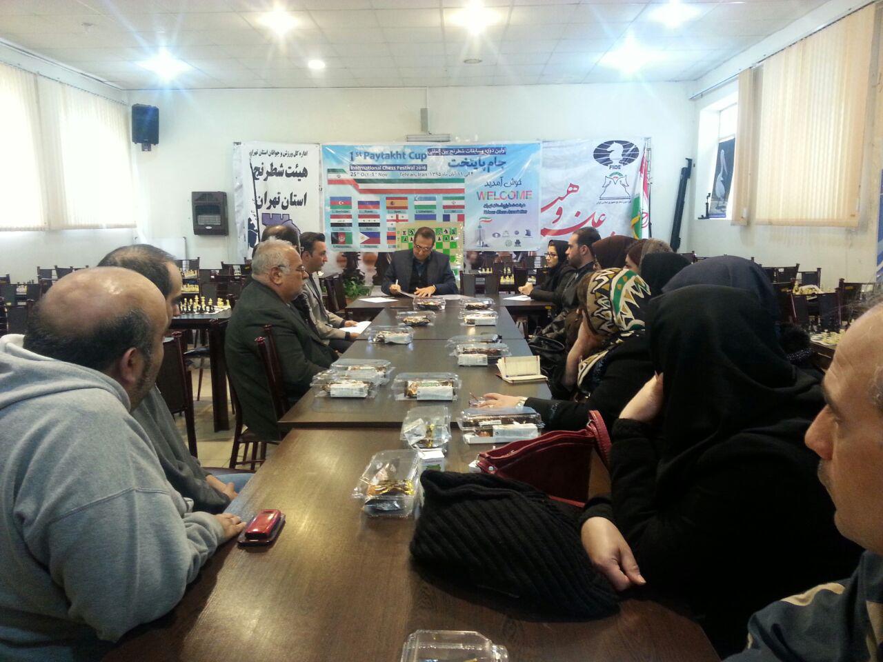 در این جلسه ابتدا جناب آقای دانشفر عضو هیئت رئیسه فدراسیون شطرنج و رئیس هیئت شطرنج استان تهران ضمن خوشامد گویی و خیر مقدم به ارائه صحبت هایی جهت هر چه بهتر شدن شطرنج استان تهران پرداختند و از رؤسای هیئت های خواستند که هم چون گدشته در راستای تحقق این هدف کوشا باشند.
